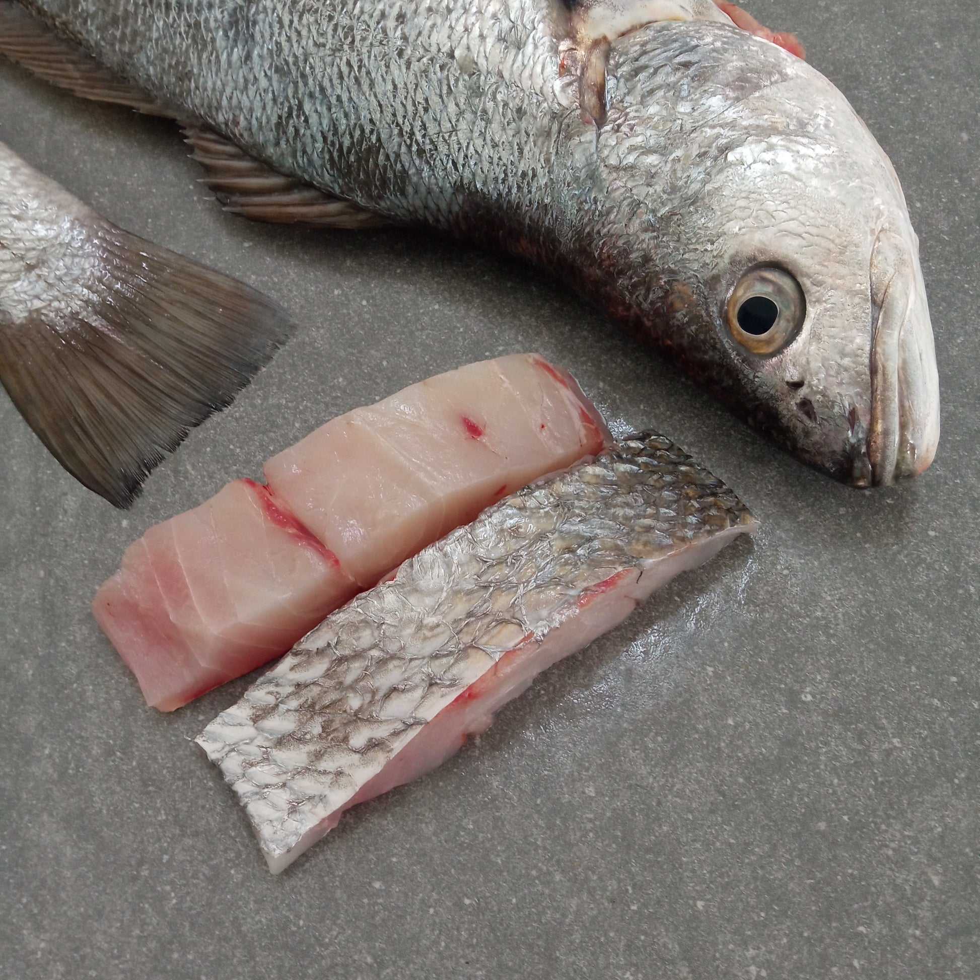 Also known as Cape Kob or Silver Kob, the kabeljou is a fish whose population has been severely impacted by unsustainable fishing practices. When served fresh the kabeljou features succulent and firm flesh and very few bones, which makes it perfect for home preparation. We only stock kabeljou that is caught one at a time with a pole and line as this is the lowest impact way of harvesting this fish.